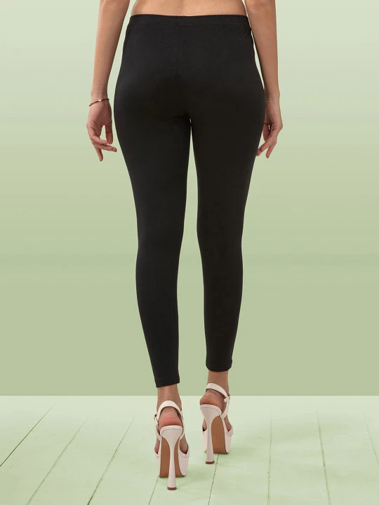 Black solid regular-fit Ankle length leggings, has an elasticated waistband, and slip-on closure
